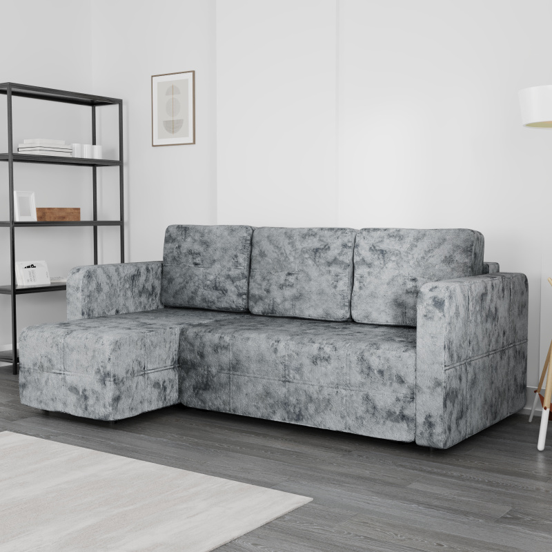 • Удобен для угловых моделей; нужна свободная зона перед диваном.
