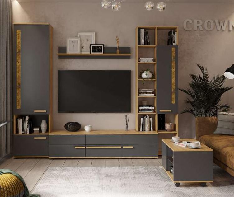 Crown 22 (гостиная) Шкаф МЦН (01) (Дуб золотистый/Графит)