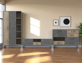 Тумба под ТВ Статус дуб самдал/цемент темный Тумба под ТВ Статус дуб самдал/цемент темный Тумба под ТВ Статус дуб самдал/цемент темный