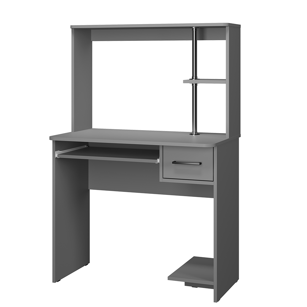 • Организация пространства: Надстройка над столом позволяет разместить аудиосистему, фотографии или декор, освобождая основную зону для работы. Выдвижная панель для клавиатуры обеспечивает эргономичное положение рук.