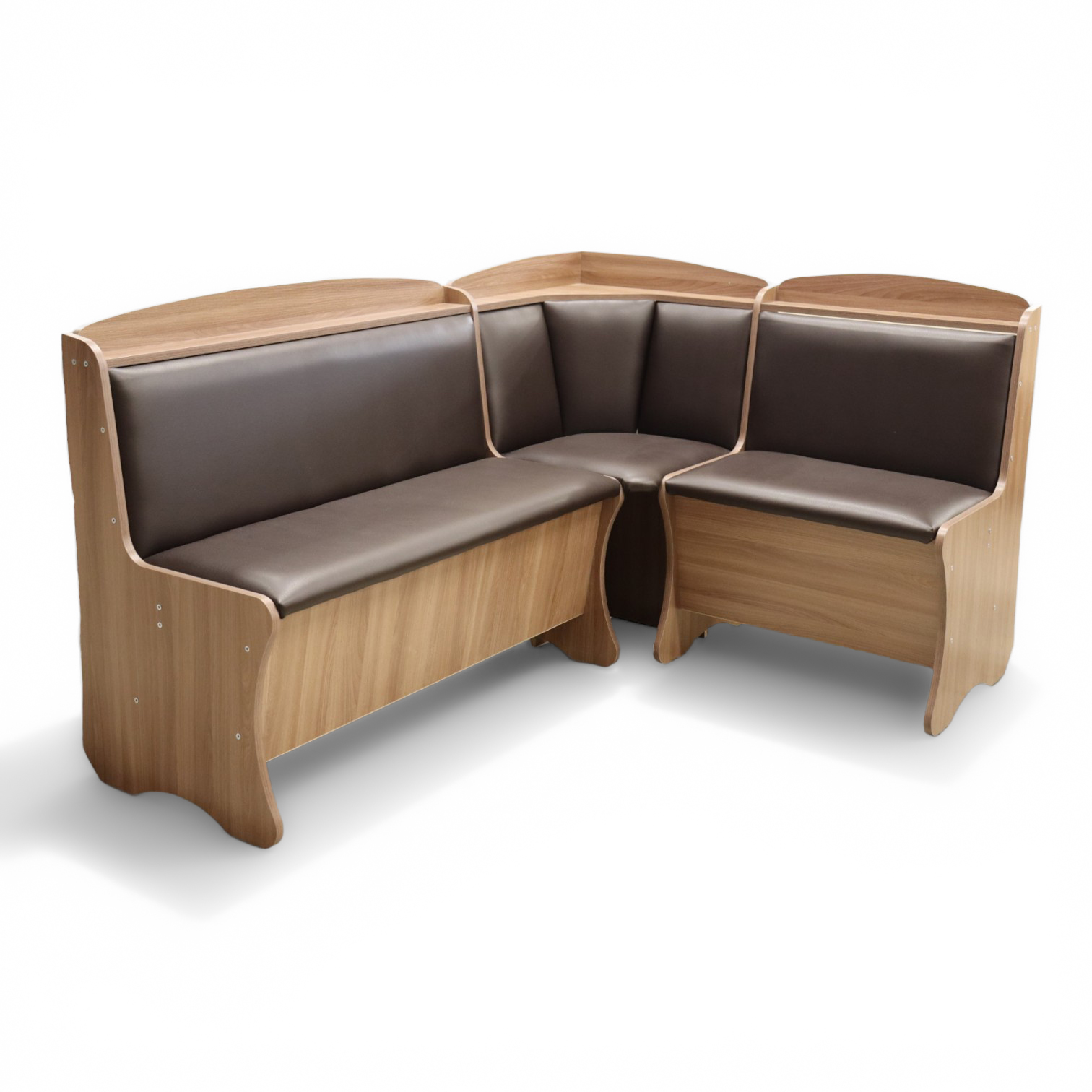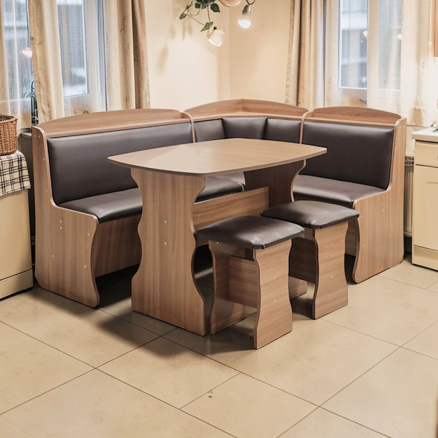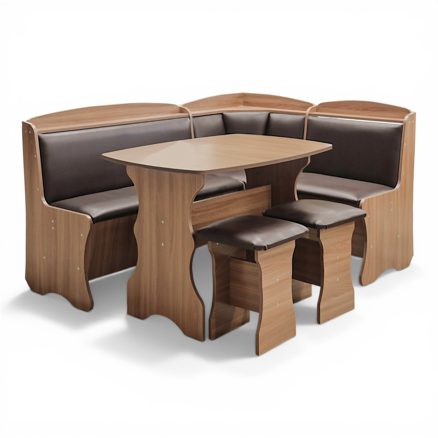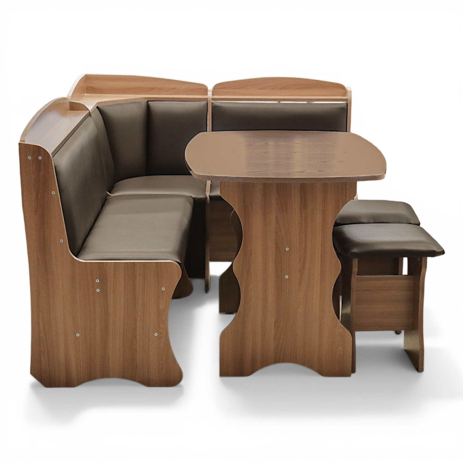 —Обеденная группа, Ясень шимо темный (скамья, стол, табурет), Кож.зам. Sicilia BROWN