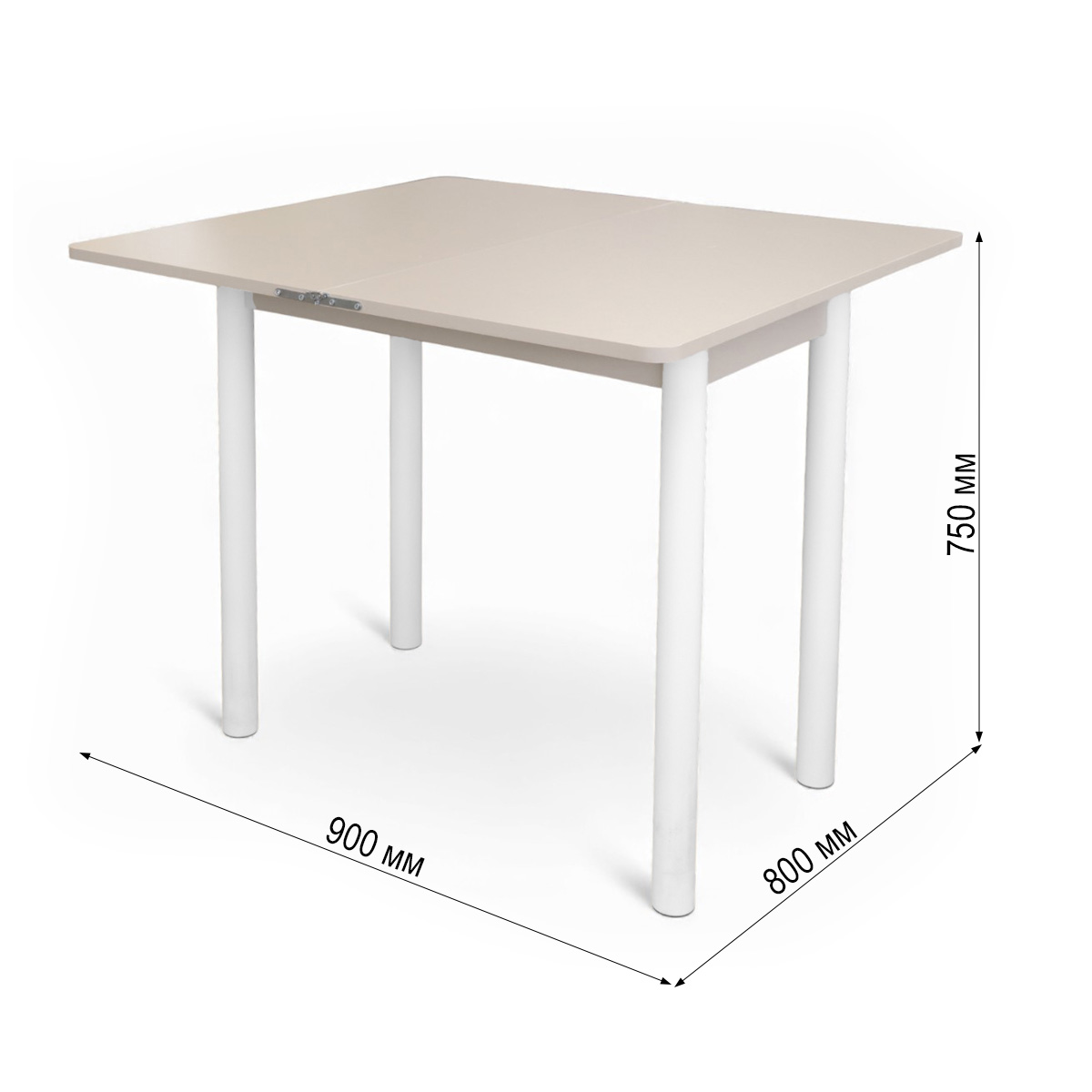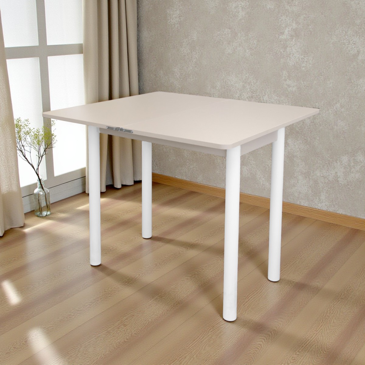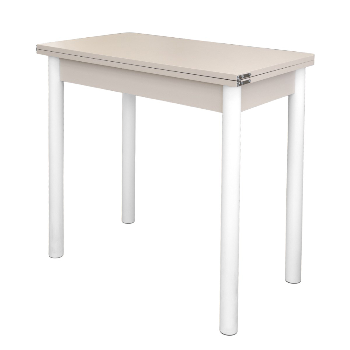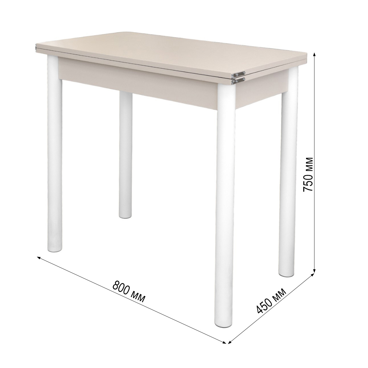 Стол Уют 4 450(+450)*800*750/ ЛДСП Кашемир/Кашемир/опора D50 "труба" белый