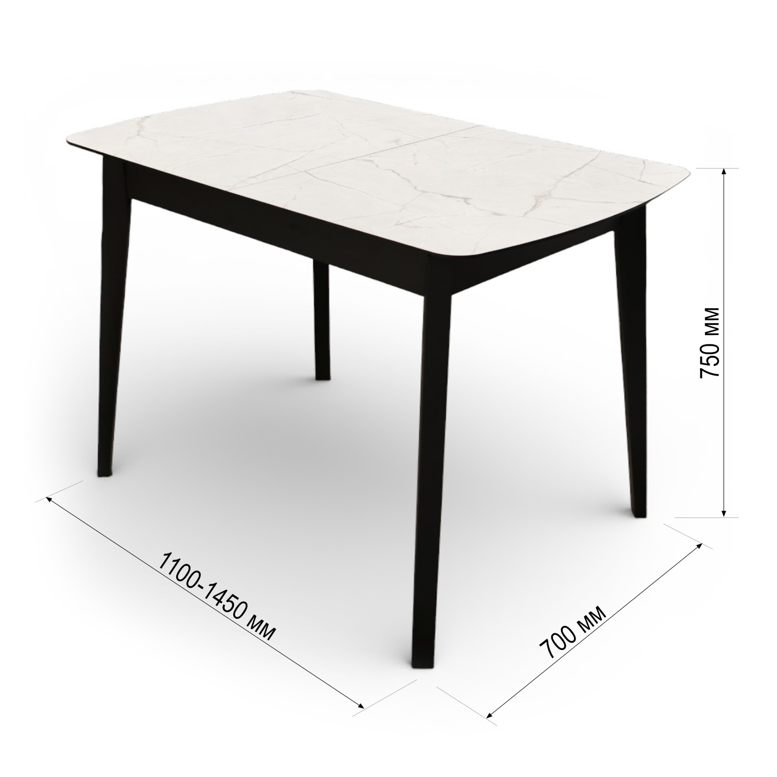 Стол Ньюман МДФ/пластик, 1100 (1450)*700 Мрамор Монтекатини, опора ZD08 дер/черный