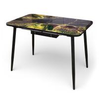 Стол обеденный Турин 110(+40)*70 Абстракция / черный