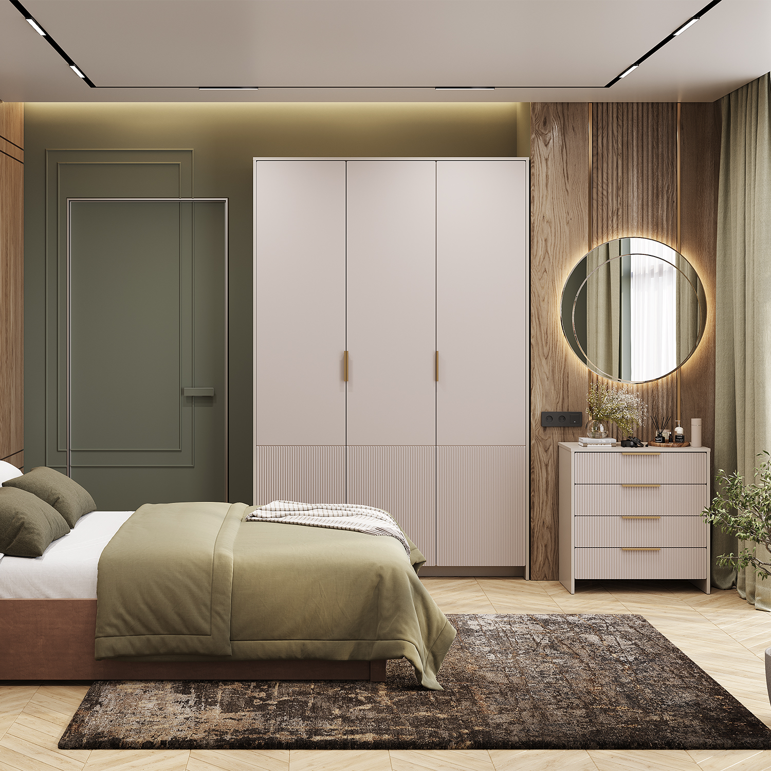 Лаконичный дизайн и отсутствие лишних деталей облегчают уход за комодом и делают его универсальным дополнением любого интерьера. Нежные оттенки фасада «айриш» и корпуса «кашемир» создают атмосферу уюта, а элегантная фрезеровка на фасаде добавляет модели изысканности и подчеркивает текстуру МДФ.