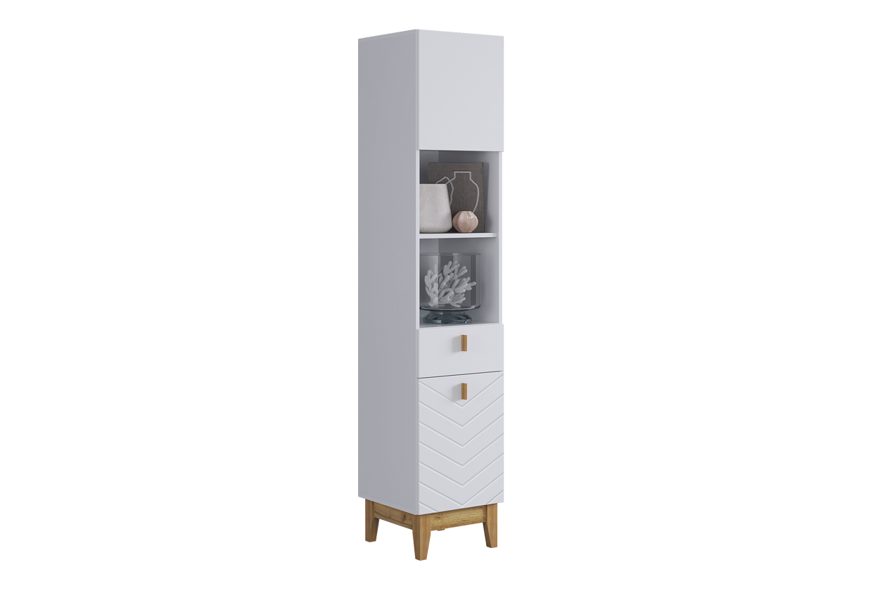 Узкий многофункциональный стеллаж для организации хранения в любом помещении. Модель сочетает закрытые и открытые секции, что позволяет гибко зонировать пространство и поддерживать порядок. Выполнен в лаконичном скандинавском стиле.