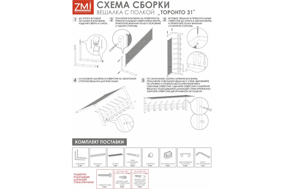 —Вешалка Торонто 31 с полкой металл Белый*885