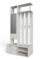 В такие наборы входят вертикальные деревянные ламели, на которых на внешней части зафиксированы крючки. Есть вертикальное зеркало разного размера. Удобно, что в набор включена тумбочка с верхней частью для сидения, а также выдвижные шкафы, калошницы. В некоторых наборах предусмотрены полки для аксессуаров и головных уборов. В определенных коллекциях есть небольшой вертикальный шкаф, открытые и закрытые шкафы на несколько уровней. Самые верхние полки либо литые, либо же на небольших ножках; этот прием добавляет легкости всей конструкции.