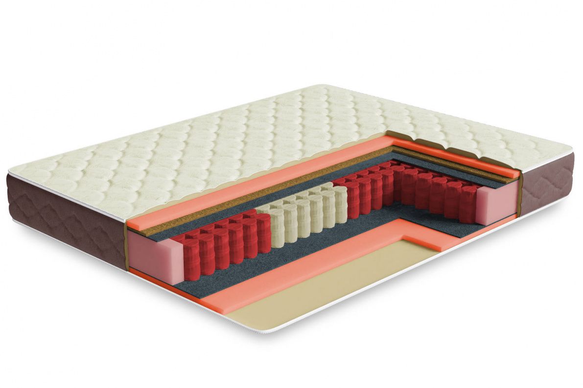Матрас имеет разную жесткость сторон, с небольшой разницей между ними, поэтому модель подойдет для покупателей, которые до конца не определились с желаемой жесткостью. В основе матраса лежит блок независимых пружин с плотностью пружин 410 шт/ спальное место, такая высокая плотность гарантирует высокую точность повторения контура тела. Латексированный кокос распределяет нагрузку по всему блоку и придает дополнительной жесткости спальному месту. Для увеличения срока службы матраса рекомендуется его использование с защитным чехлом AquaStop.