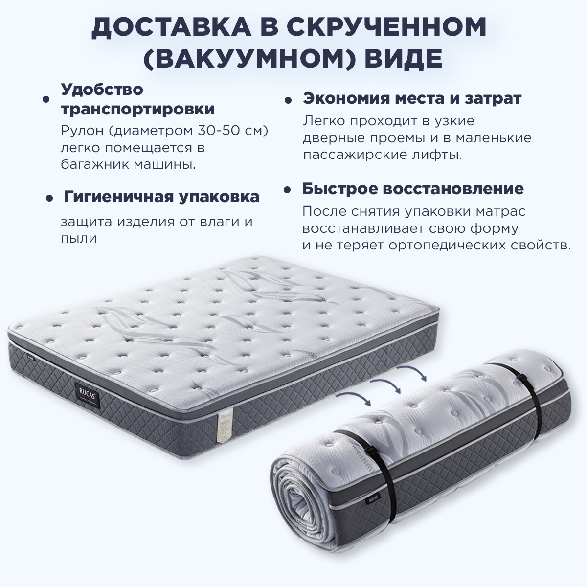 Ортопедический матрас RUP-2503 с эффектом памяти: Индивидуальная поддержка и невесомый комфорт.