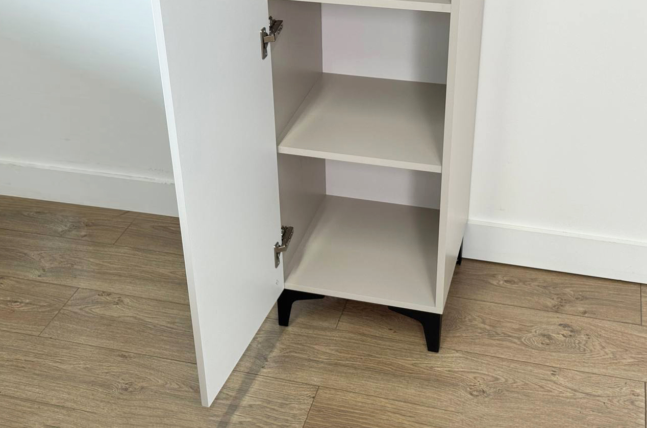 • Стильный дизайн: Элегантный фасад из МДФ с декоративной фрезеровкой и надёжная металлическая ручка.