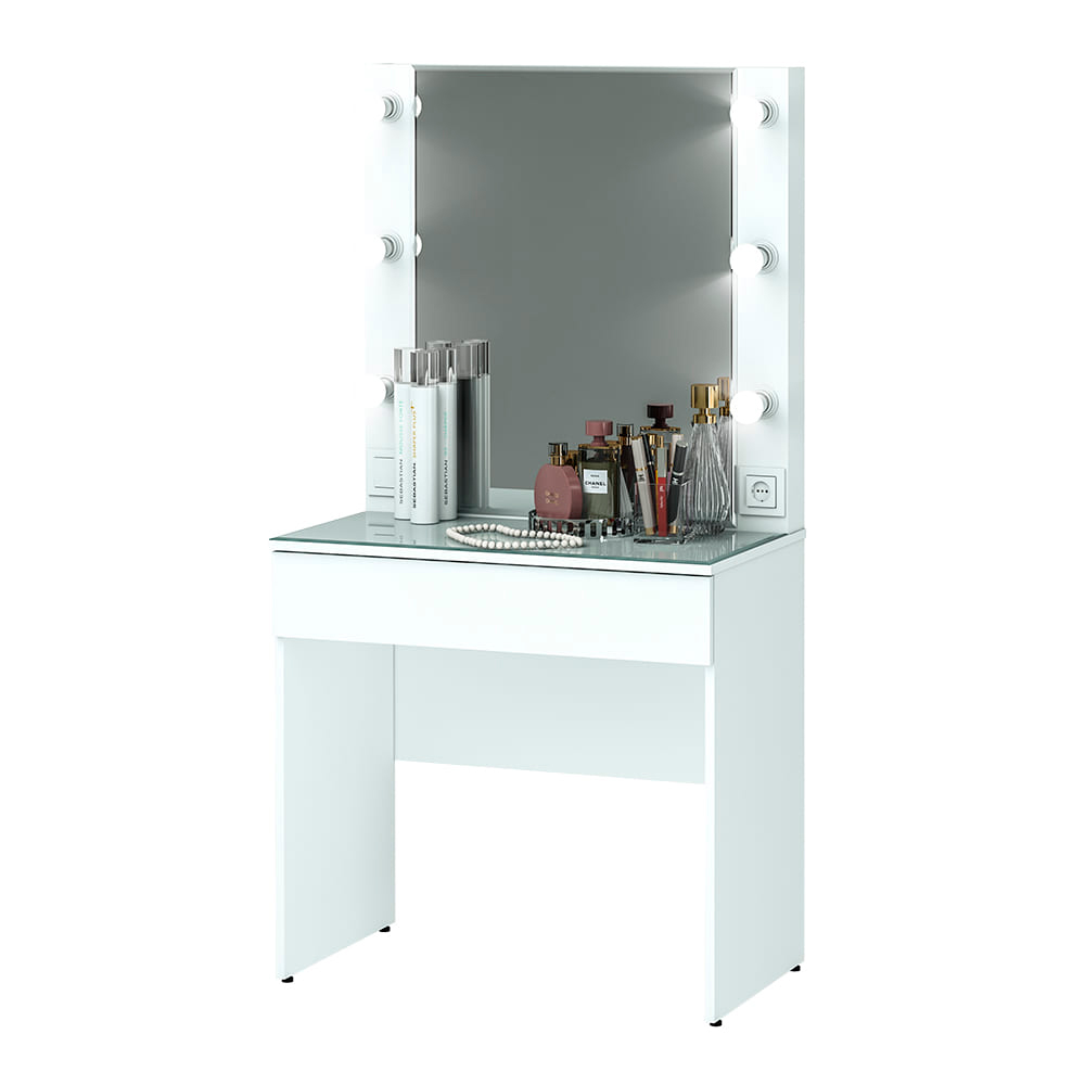 Косметический стол «Мемори» СТ-03 — это идеальное решение для создания уютного и стильного уголка в вашей спальне или гардеробной. Модель выполнена в белом цвете, который станет украшением любого светлого интерьера. Главная особенность стола — подсветка по периметру зеркала, которая создает идеальные условия для макияжа и ухода за собой. Стол оснащен съемной стеклянной столешницей, удобным выдвижным ящиком для косметики и встроенной розеткой для подключения электроприборов. Правильный выбор по лучшей цене — стол «Мемори» СТ-03.