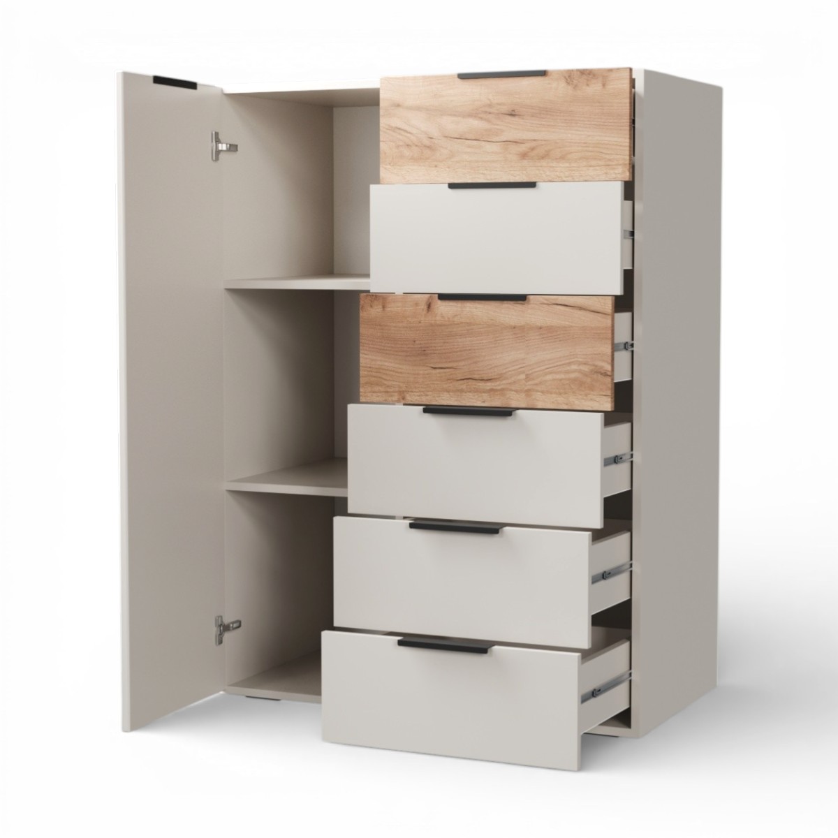 —Комод Севиль 1 дв.6 ящ/Кашемир/Дуб крафт