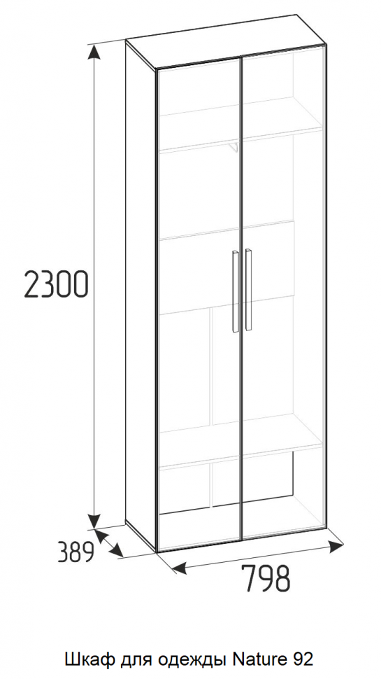 —Корпус шкафа для одежды Nature 92 Корпус + фасад +фасад 2-х дв Дуб Табачный Craft