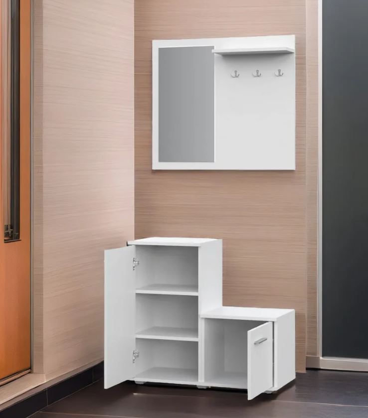 Для экономии пространства. Две компактные тумбы для обуви оптимально используют площадь.